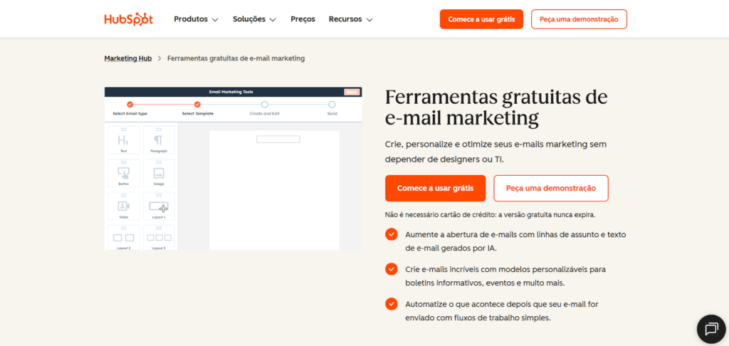 Página de serviço de e-mail marketing da HubSpot