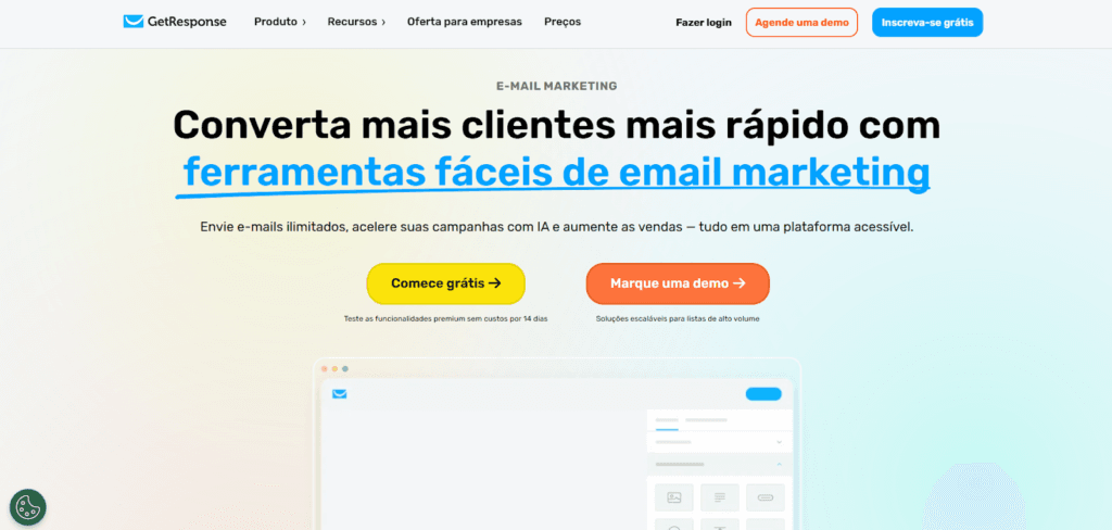 O GetResponse é outra indicação de plataforma de e-mail marketing. A ferramenta é voltada para empresas que desejam concentrar ações de e-mail marketing dentro de uma estratégia mais ampla de marketing digital.