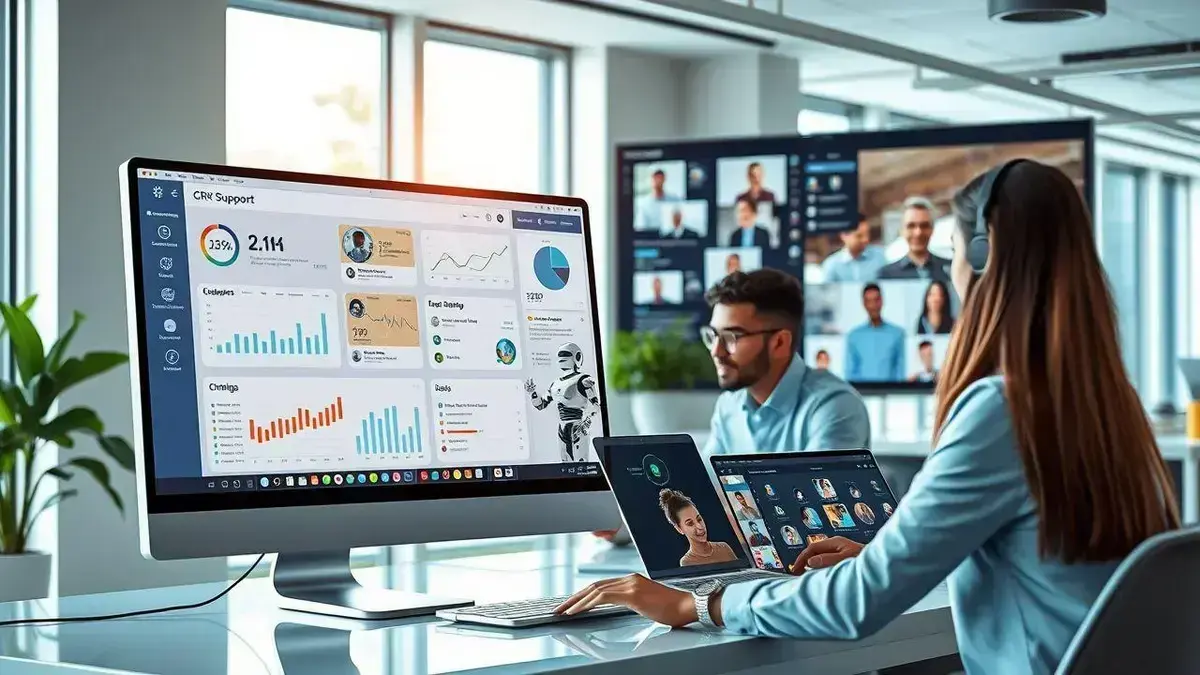 Um software de CRM (Customer Relationship Management) ajuda a gerenciar o relacionamento com os clientes. Ele centraliza informações sobre interações, histórico de compras e preferências, permitindo que a equipe ofereça um atendimento personalizado e eficiente.
